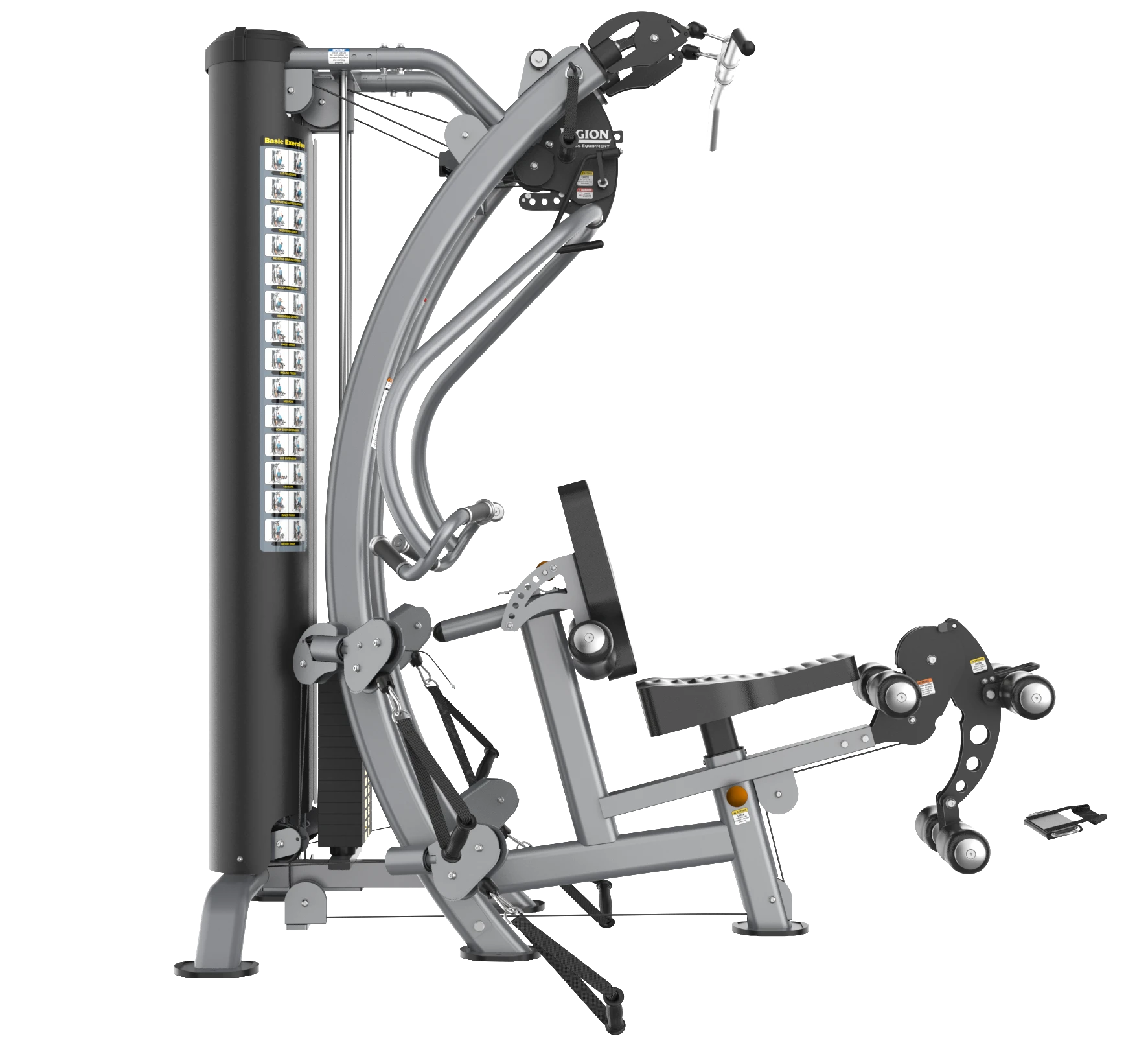 - Leg extension and standing leg curl with low pulley and adjustable foam leg rollers.